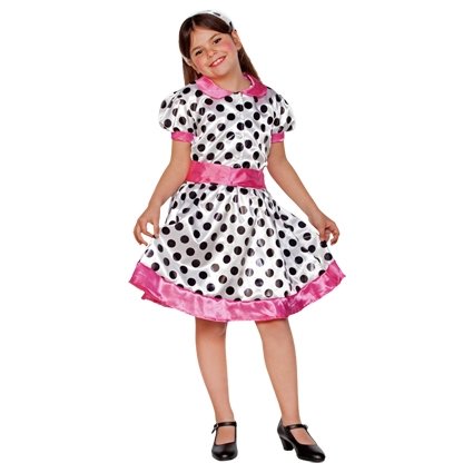 Rock en Roll kostuum kindBestaande uit: jurk, riem en hoofdbandMaten 7-9 en 10-12 jaar7-9 = 122-138 cm10-12 = 139-155 cm