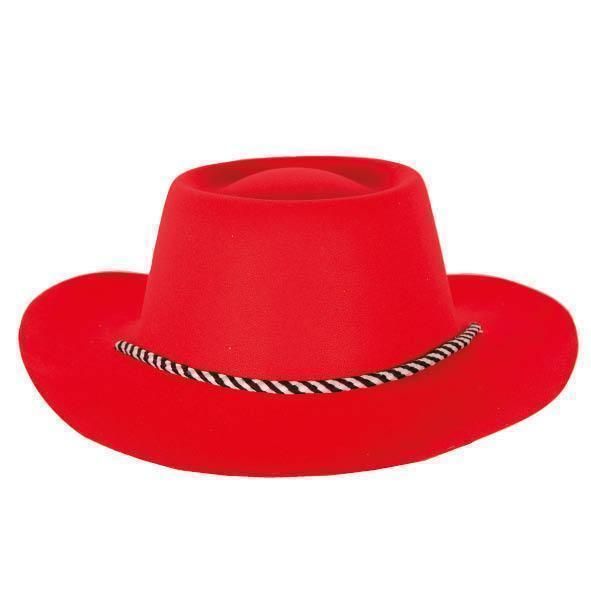 - Rode hoed Cowboy flocked- Materiaal: Plastic met een stoflaagje