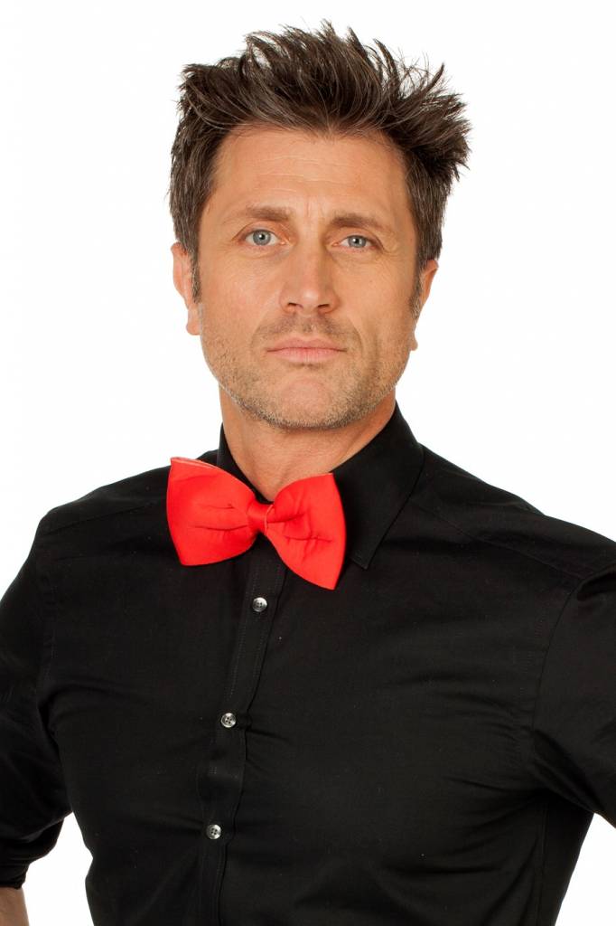 - Rode strik- Afmetingen: 13,5 x 7,5cm- Voorzien van zwart elastisch bandje