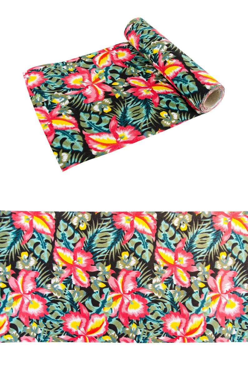 - Rol Tafelloper Tropische Bloemen- Afmetingen: 3m x 28cm- Materiaal: linnen