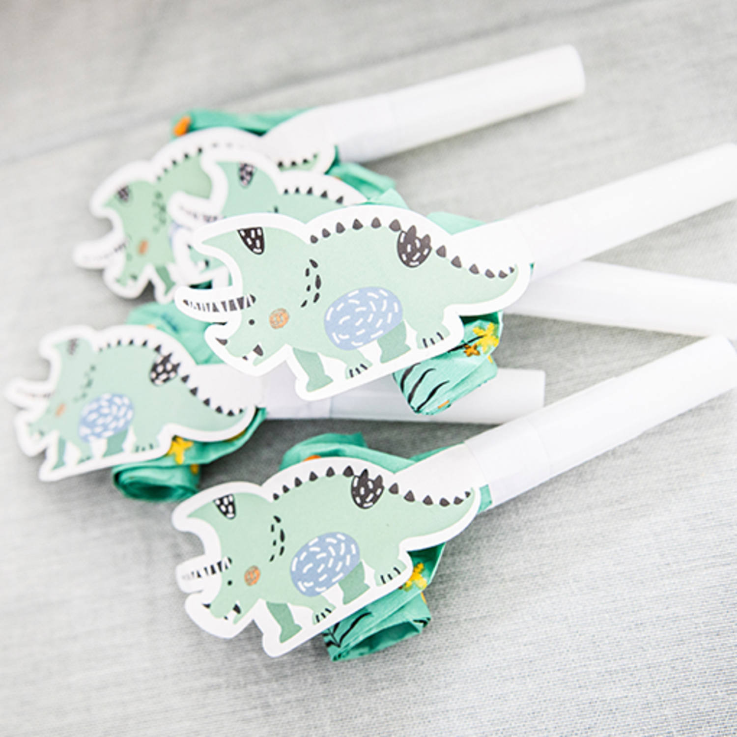 - Roltongen Dino Roars 24cm- Materialen: Papier en plastic mondstuk- Bestaande uit: 6 roltongen