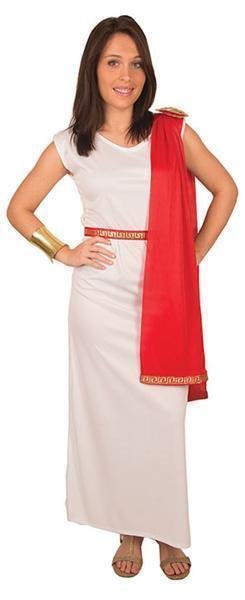 Ben je op zoek naar een leuk kostuum voor een Klassieke Oudheid feestje? Ga voor dit kostuum waarin je net een echte Romeinse vrouw bent! De lange jurk heeft een rode lap die aan het kostuum vast zit en direct aan de romeinen doet denken. Combineer het kostuum met een krans in het haar en eventueel een Romeins zwaard om jezelf te beschermen!