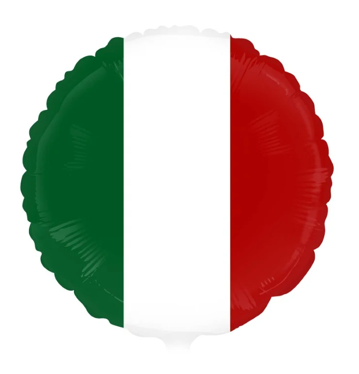 - Ronde Folieballon Italie - Doorsnede ± 46cm - Inhoud: Leeg (standaard) - Geschikt voor: helium en lucht - Zweeftijd (helium): 1 tot 2 weken - Materiaal: folie