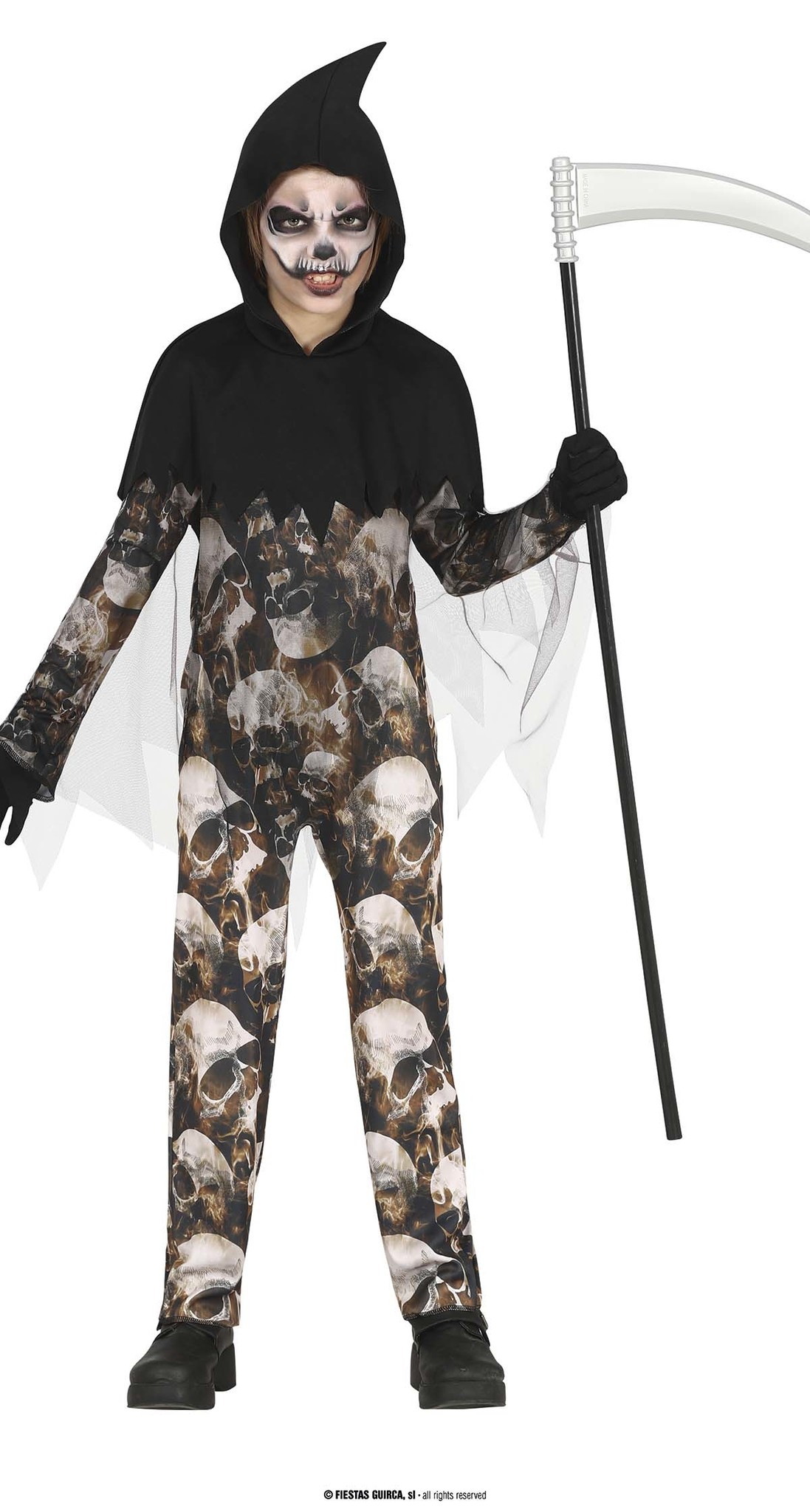 - Schedel Kostuum Met Kap Kind- Beschikbare maten: 5-6 jaar, 7-9 jaar en 10-12 jaar - Bestaande uit: Jumpsuit en kap- Materiaal: PolyesterExclusief accessoires!5-6 jaar = 105-115cm7-9 jaar = 115-135cm10-12 jaar = 135-148cm