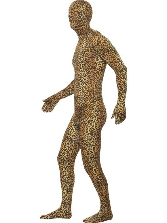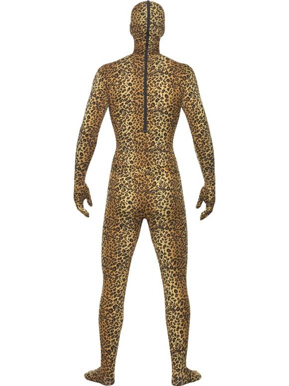 Strak vallende jumpsuit met luipaard print met een opening onder de kin zodat er makkelijk gedronken kan worden. Een verborgen opening bij het kruis voor het toilet gebruik en een heup tasje voor bijv. een portemonnee. Op de rug van deze jumpsuit zit een ritssluiting.