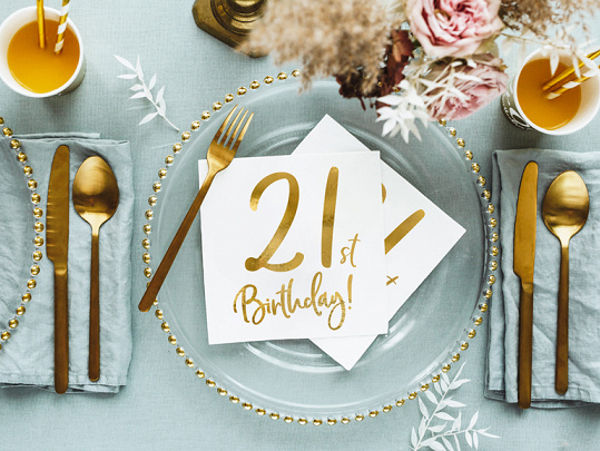 - Servetten 21th Birthday Goud- 20 stuks per verpakking- Afmetingen: 33 x 33 cm- Materiaal: Papier