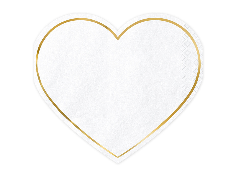 Servetten Hartjes Wit met gouden rand - 20 Stuks