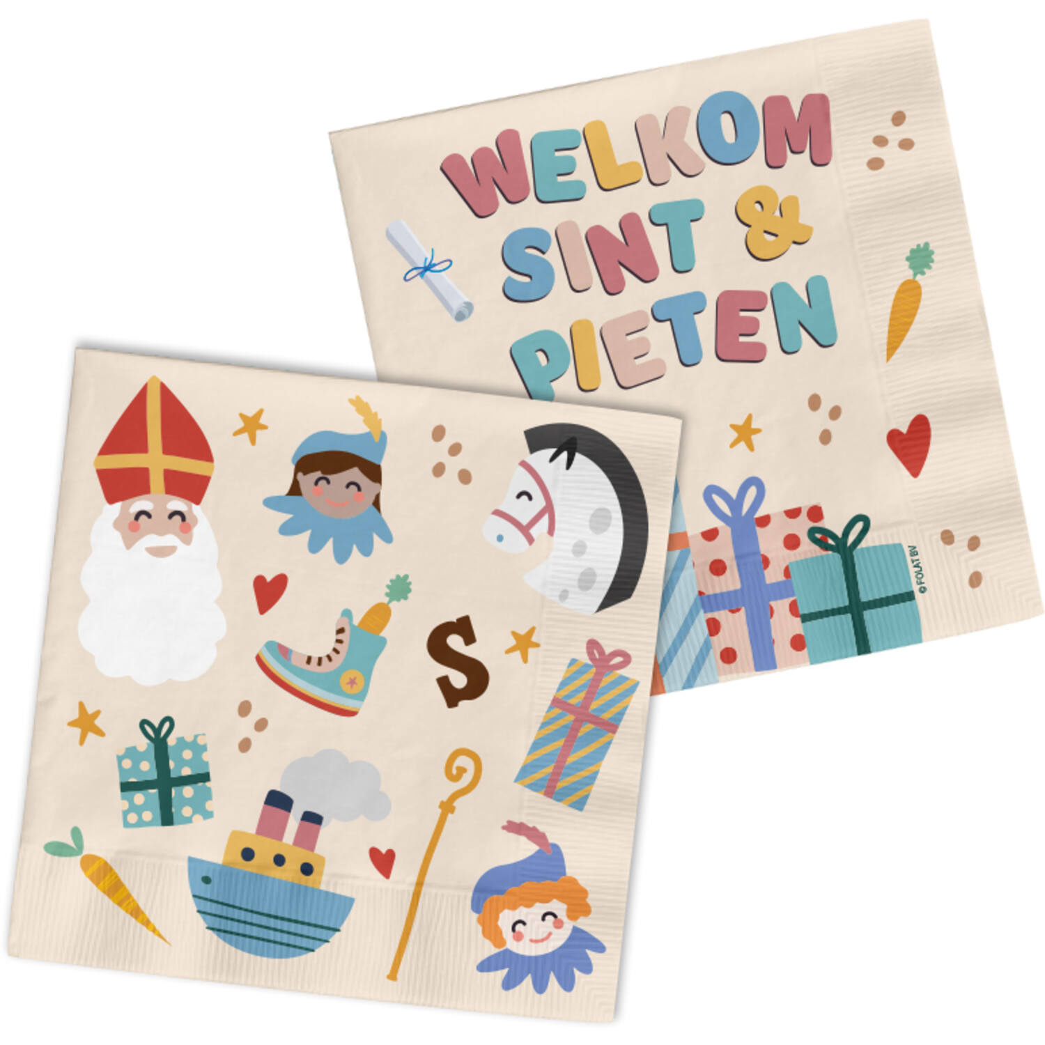 - Servetten Welkom Sint & Piet Cartoon (20st)- Afmetingen: 25 x 25 cm- Materiaal: Tissue Papier- Enkelzijdig bedrukt