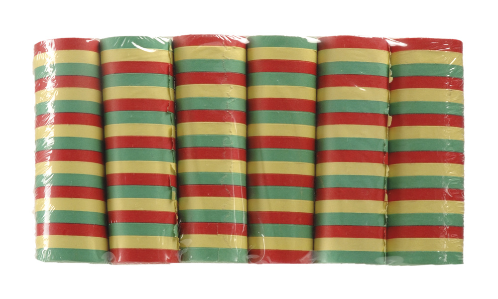 Set 6 Rollen serpentines rood/geel/groenLengte rol 4 meterBrandvertragend