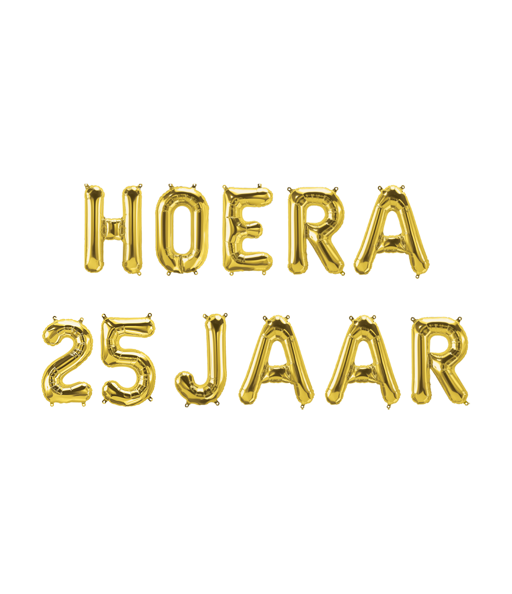 - Set Folie Ballonnen - Hoera 25 Jaar Goud- Afmeting: 190 x 40 cm (lengte x hoogte)De folie ballonnen set is ideaal als er wat te vieren valt! Geen gedoe met losse ballonnen, want met foil balloon kit Hoera 25 jaar ben je in één keer klaar.