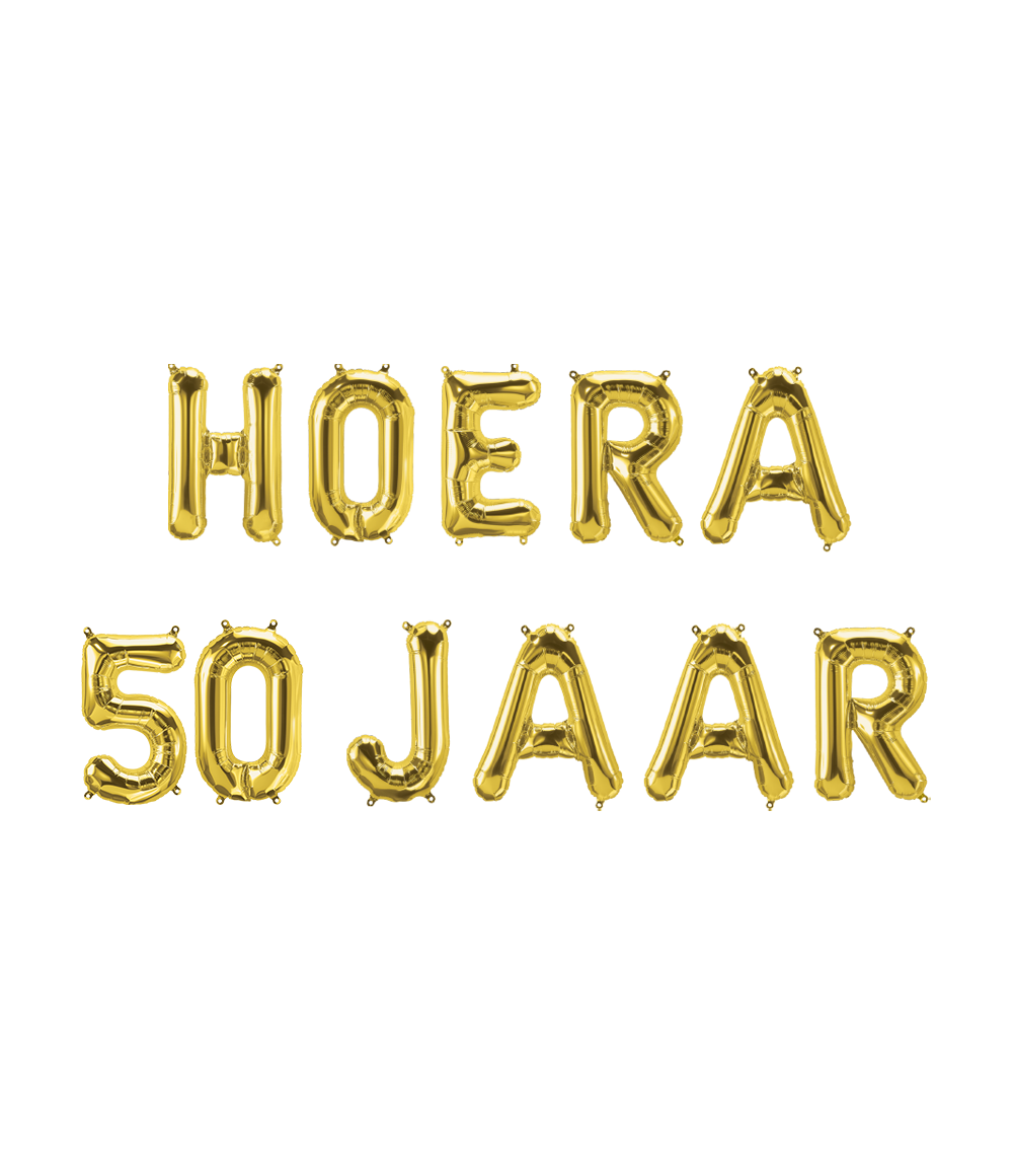 - Set Folie Ballonnen - Hoera 50 Jaar Goud- Afmeting: 190 x 40 cm (lengte x hoogte)De folie ballonnen set is ideaal als er wat te vieren valt! Geen gedoe met losse ballonnen, want met foil balloon kit Hoera 50 jaar ben je in één keer klaar.