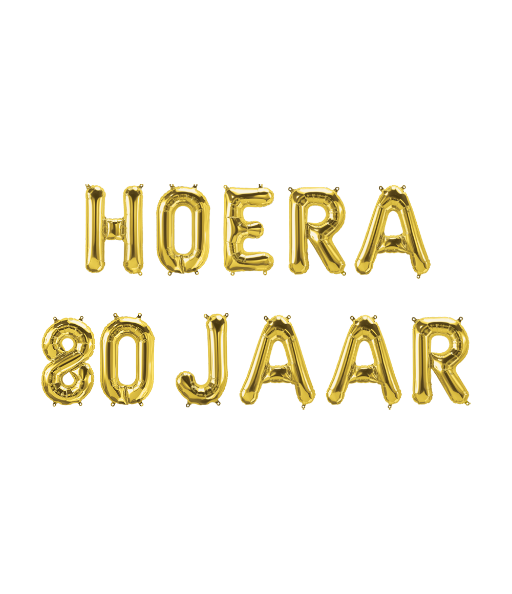 - Set Folie Ballonnen - Hoera 80 Jaar Goud- Afmeting: 190 x 40 cm (lengte x hoogte)De folie ballonnen set is ideaal als er wat te vieren valt! Geen gedoe met losse ballonnen, want met foil balloon kit Hoera 80 jaar ben je in één keer klaar.
