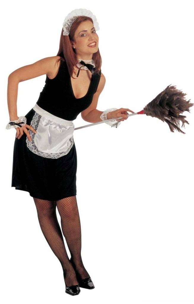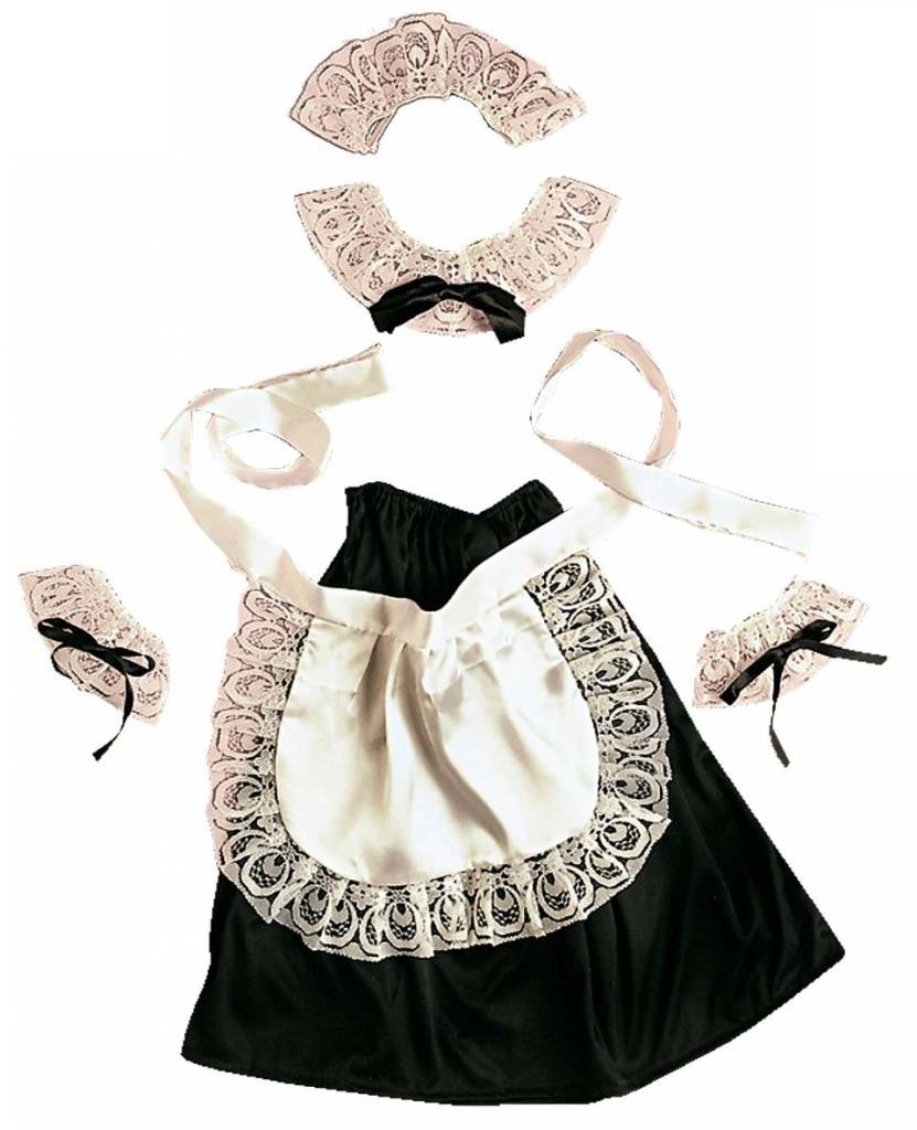 -Set kamermeisje bestaande uit: Hoofdbedekking, Halsdecoratie, Polsbanden, Rok en Schort-Rok is voorzien van elatische band, lengte ± 40 cm-One size
