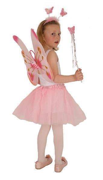 - Set vlinder 4-delig- Bestaande uit: Een rok, vleugels, staf en diadeem