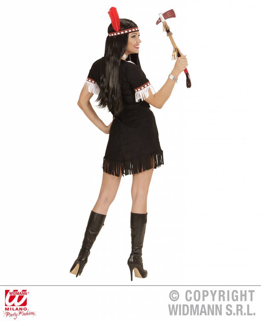In dit jurkje voel je je zeker weten een echte indiaan! Het zwarte jurkje heeft franjes aan alle kanten en een mooie witte band bij de taille. Het sierrandje bij de mouwen en de nek komt terug in het bijpassende hoofdbandje. Maak de outfit compleet met een tomahawk bijl een indianenpruik of andere accessoires. Wil je zoon of dochter ook meedoen met de verkleedpartij? Ook voor kinderen hebben we vele stoere indianenkostuums in het assortiment!