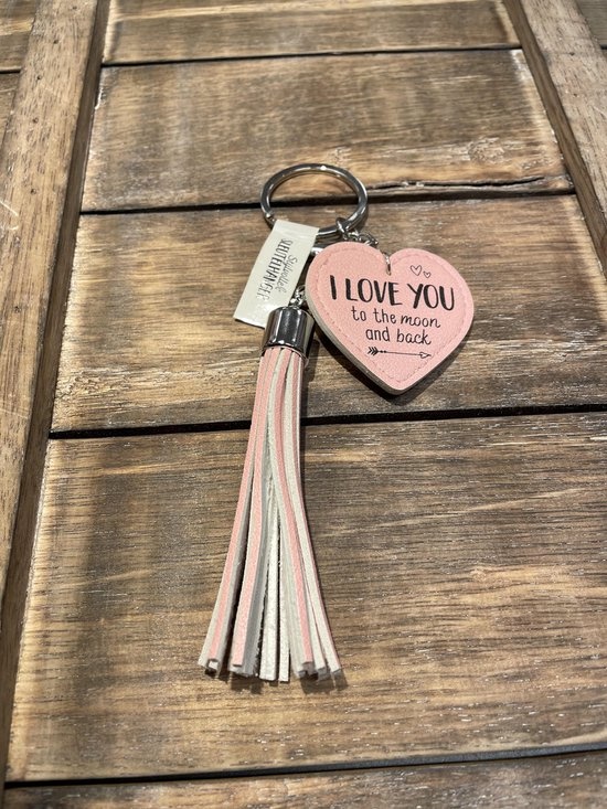 - Sleutelhanger Tassel I Love You Roze- Afmeting: ca. 17cm bij 5,5cm- Materiaal: Metaal en imitatieleer