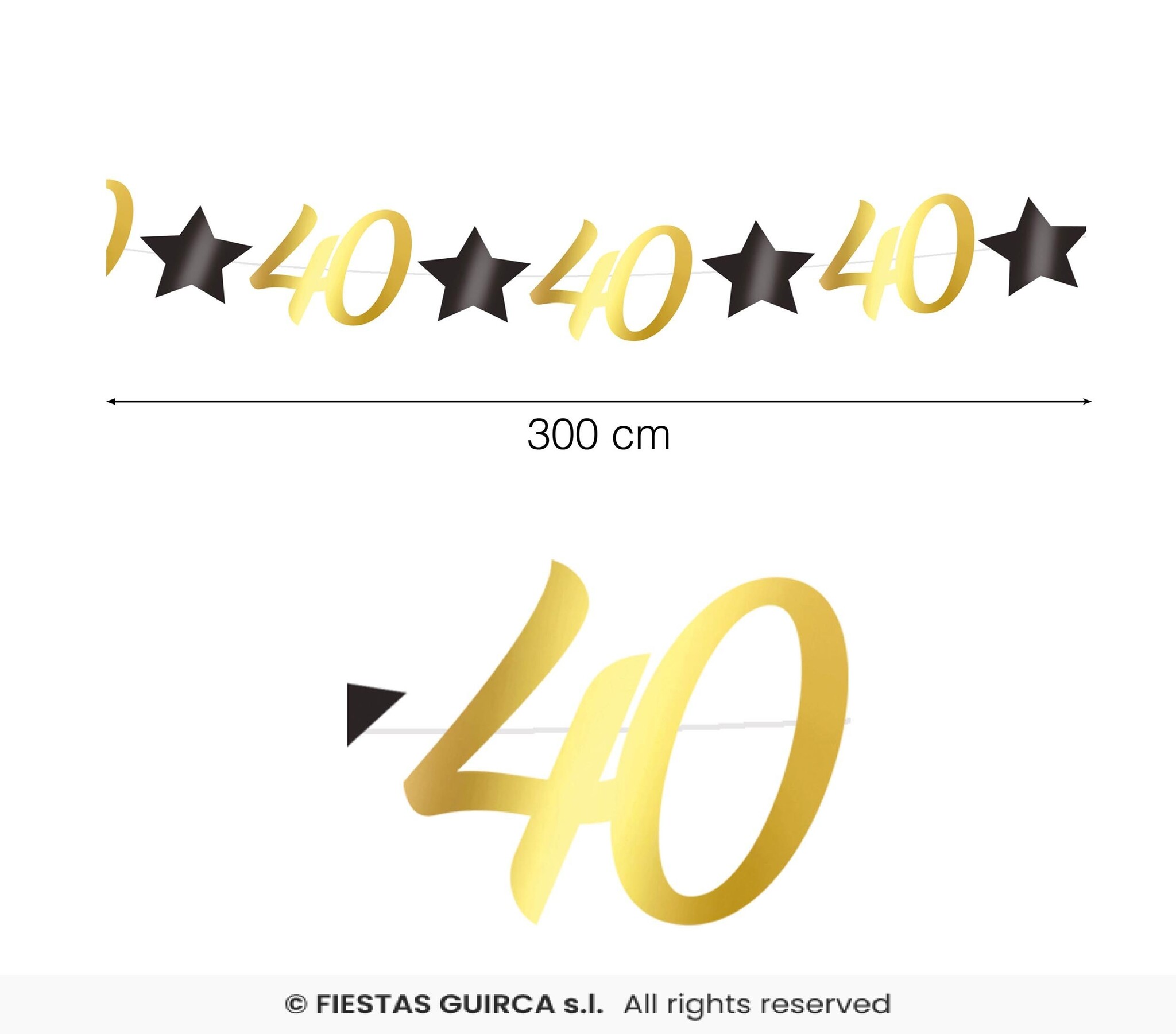- Slinger 40 Jaar Zwart & Goud Chique - Afmetingen: 5 meter - Materiaal: Karton/Papier
