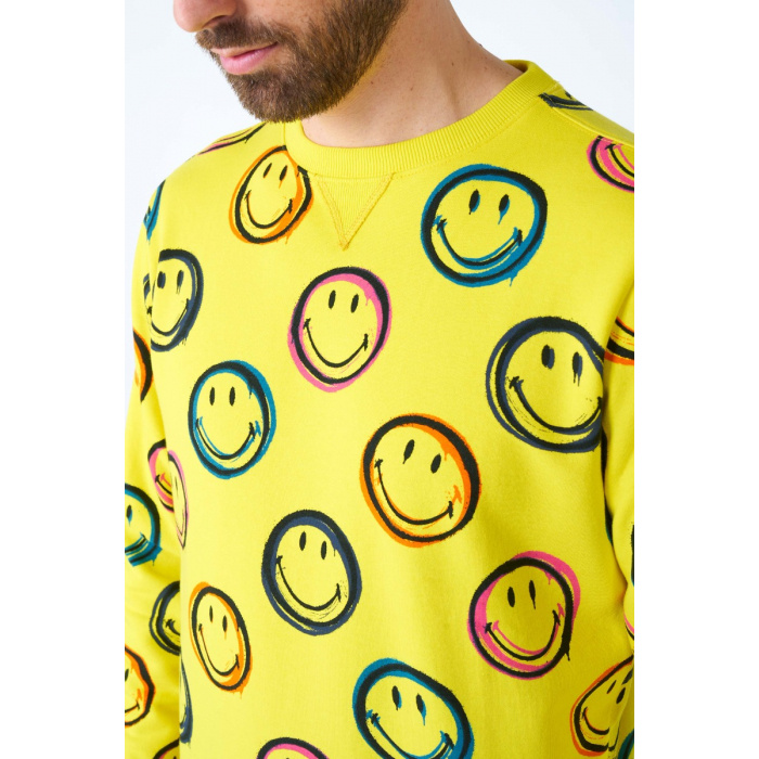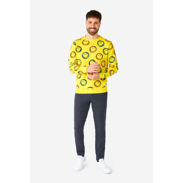 Heb je zin om je dag op te vrolijken en wil je altijd een glimlach in de buurt? Deze kleurrijke sweater is bekleed met de bekende Smiley®-pictogrammen en maakt een blijvende indruk als je hem draagt op feestjes, festivals en zelfs als vrijetijdskleding. Het trendy ontwerp heeft vintage en moderne elementen en tilt de Smiley® way-of-life naar een hoger niveau, dus ga je gang en zet je stempel op de mode.