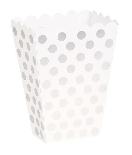 - Snackbakjes Wit Met Zilveren Stippen- Bestaande uit: 8 bakjes- Afmetingen: 14 x 9 x 6cm- Materiaal: Stevig karton