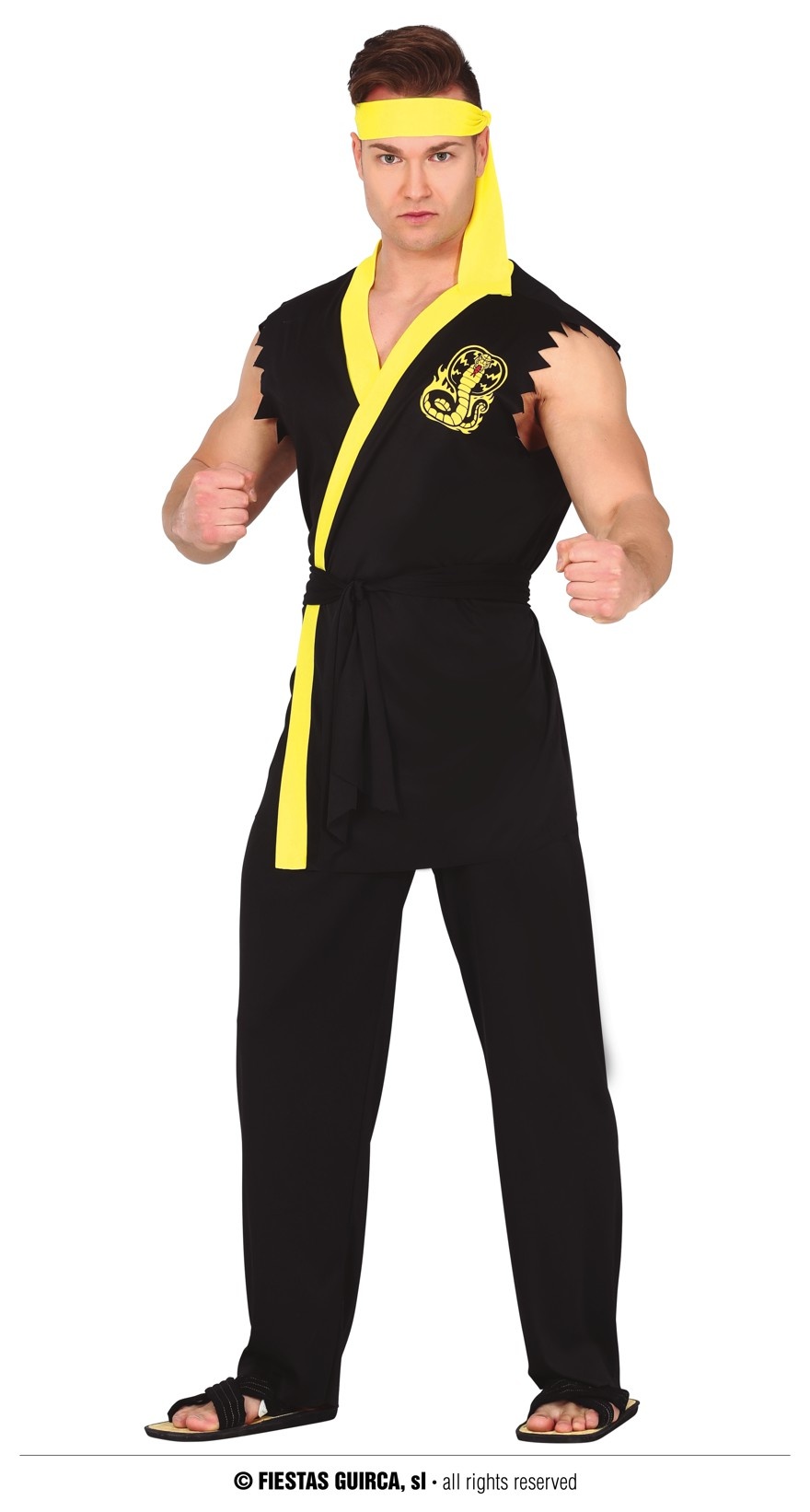 - Snake Fighter Kostuum Man- Maat: One size (maat L)- Bestaande uit: hoofdband, jas, riem, broek- Materiaal: 100% polyester