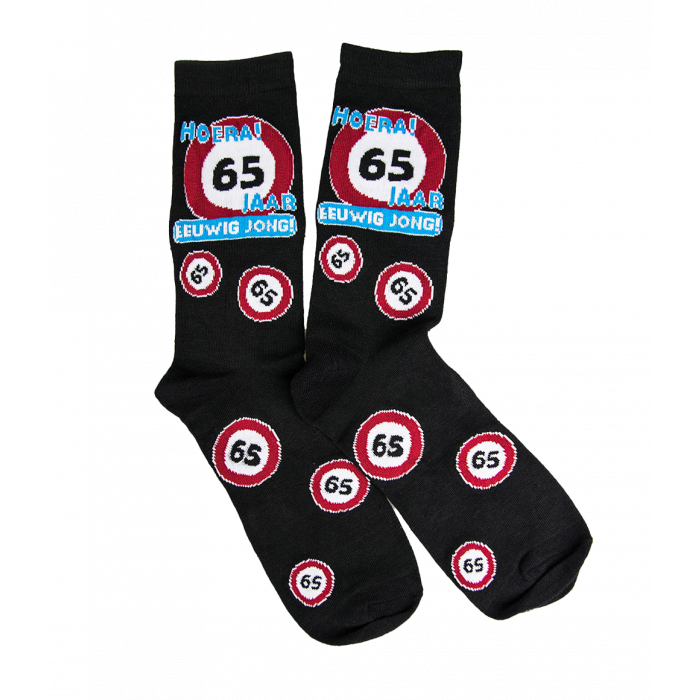 - Sokken hoera 65 jaar- One size fits most - Materiaal: Katoen