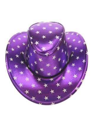 Stetsonhoed metallic paars met sterren