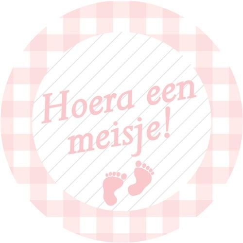 - Stickers roze ''Hoera een meisje''- Doorsnede ± 3cm- Prijs per sticker- Minimale afname 5 stickers