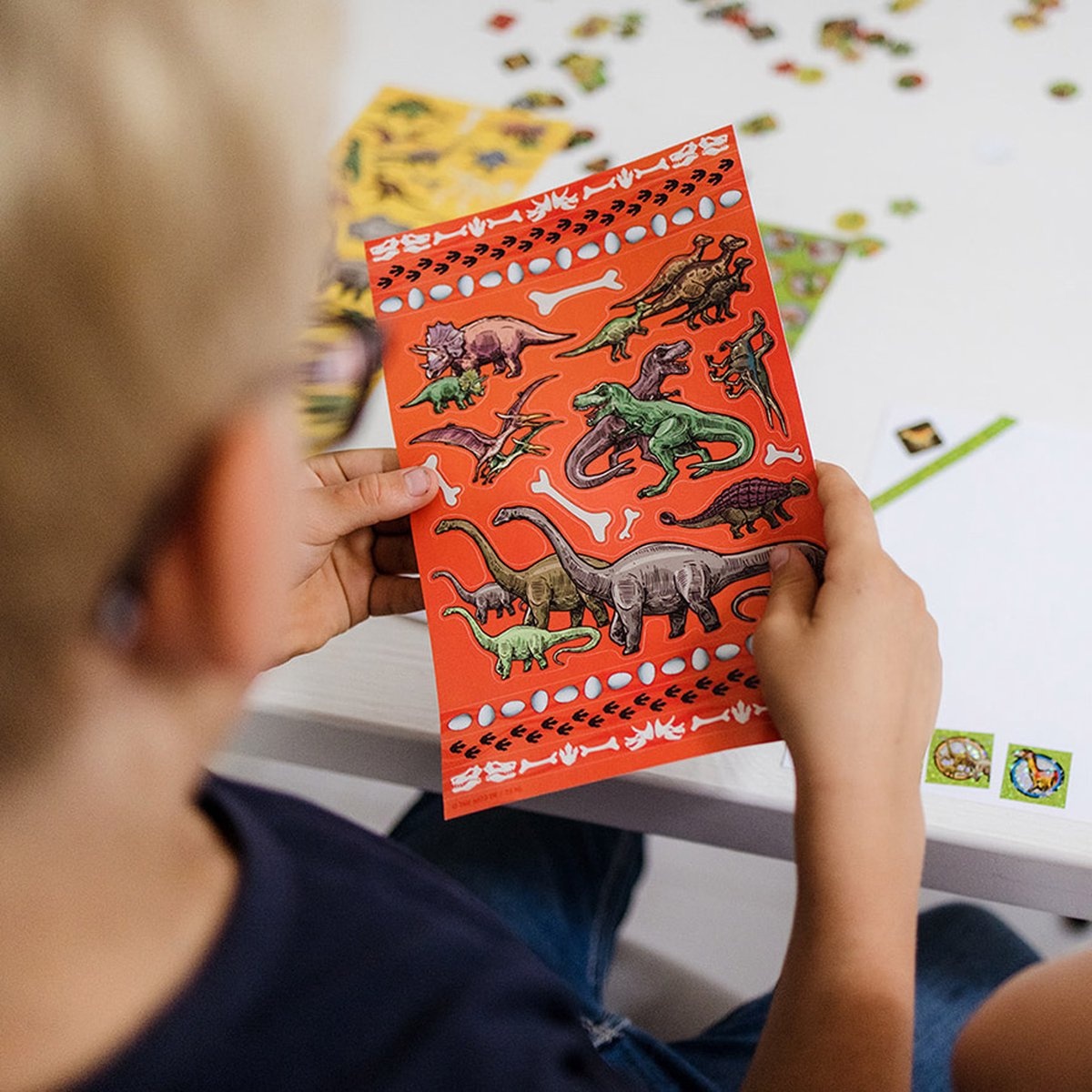 -7 stickervellen in verschillende materialen en coole dino dessins