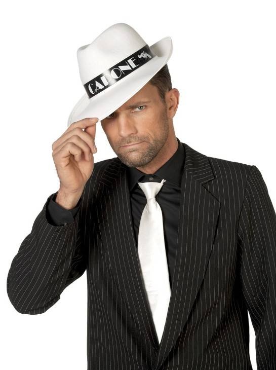 - Stoere Al Capone Hoed Wit met Zwarte rand- Beschikbare maten: One Size