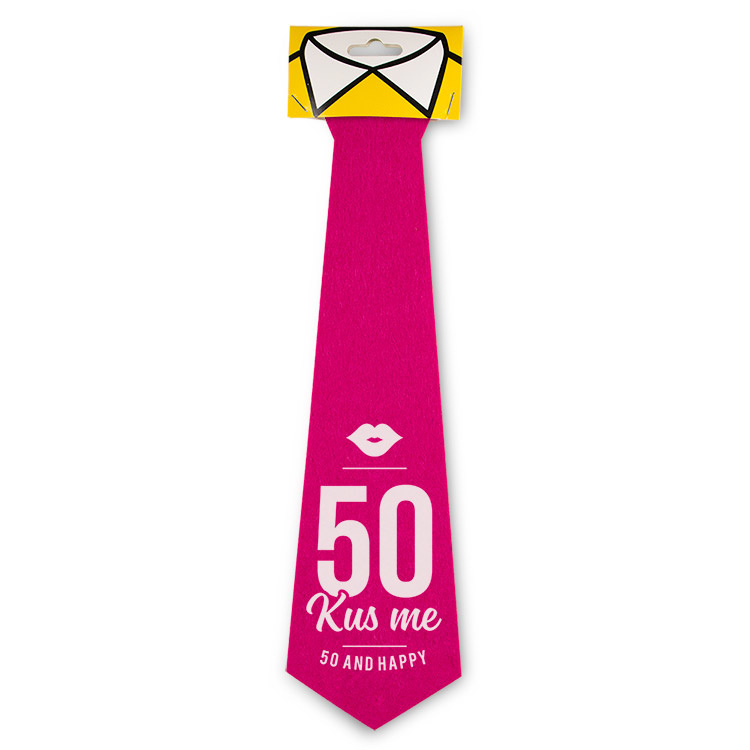 - Stropdas 50 jaar Kus Me! Vrouw- Afmetingen: 19,5x6cm- Materiaal: Vilt- Kleur: Roze