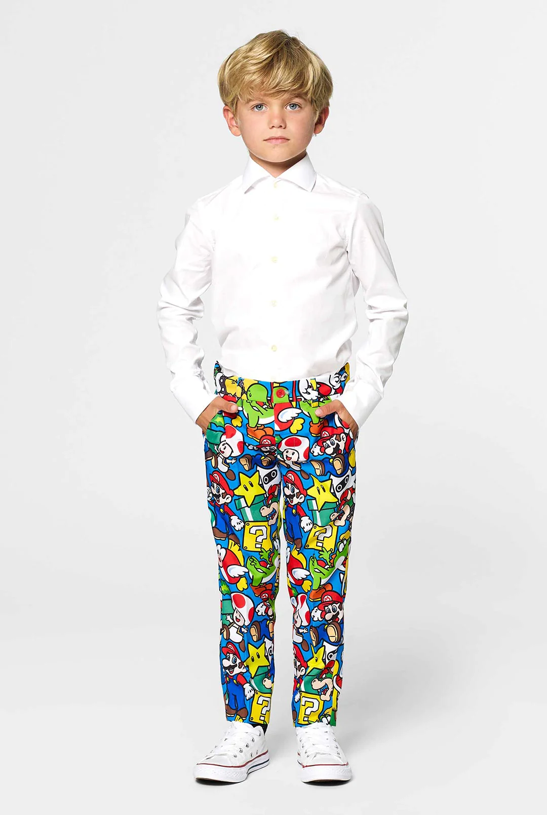 Is jouw kleine man gek op computerspelletjes? En word je zelf ook een beetje nostalgisch als je aan Super Mario denkt? Dan is dit kleurrijke, officiële Super Mario™-pak echt iets voor jullie. Met een all-over-print met alle iconische karakters uit het Mushroom Kingdom, weet je zeker dat hij de outfit game wint op elk feestje.