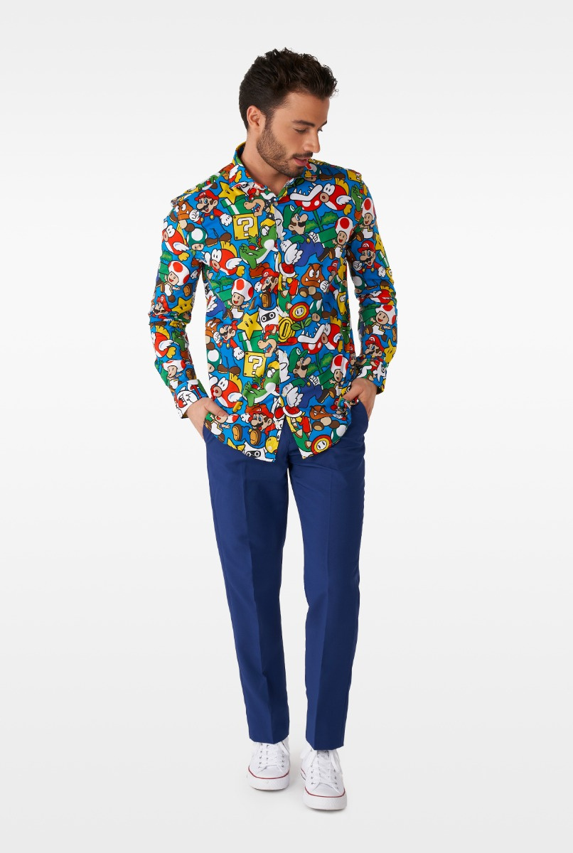 Het geweldige Super Mario-pak is nu ook verkrijgbaar als overhemd! Als je je ooit hebt afgevraagd hoe mode in het Mushroom Kingdom eruitziet, dan is dit shirt het antwoord. Een all-over print met alle iconische personages uit de Nintendo-franchise. Geef je garderobe die welverdiende 1-up met dit Super Mario ™-overhemd!