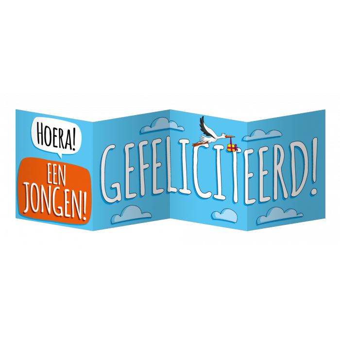 - Surprise Card - Hoera een jongen- Afmetingen: 16x12,5 cm (opgevouwen)- Voorzien van witte envelop- Materiaal: Karton