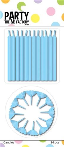 - Taartkaarsjes 24 stuks + Houders Blauw 12 stuks- Lengte kaarsjes: 6cm- Lengte houders: 2cm- Materiaal: Plastic / Wax