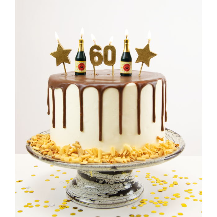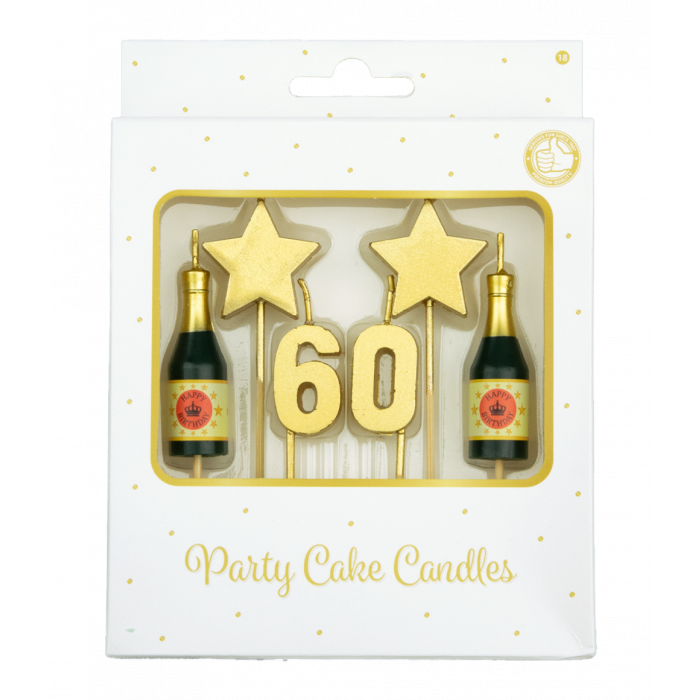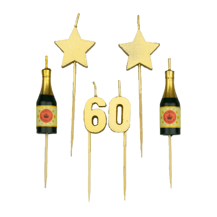-Taartkaarsjes Set 60 Jaar- Inhoud: 6 kaarsjes- Afmeting: Lengte 17,5cm en hoogte: 2,5cm
