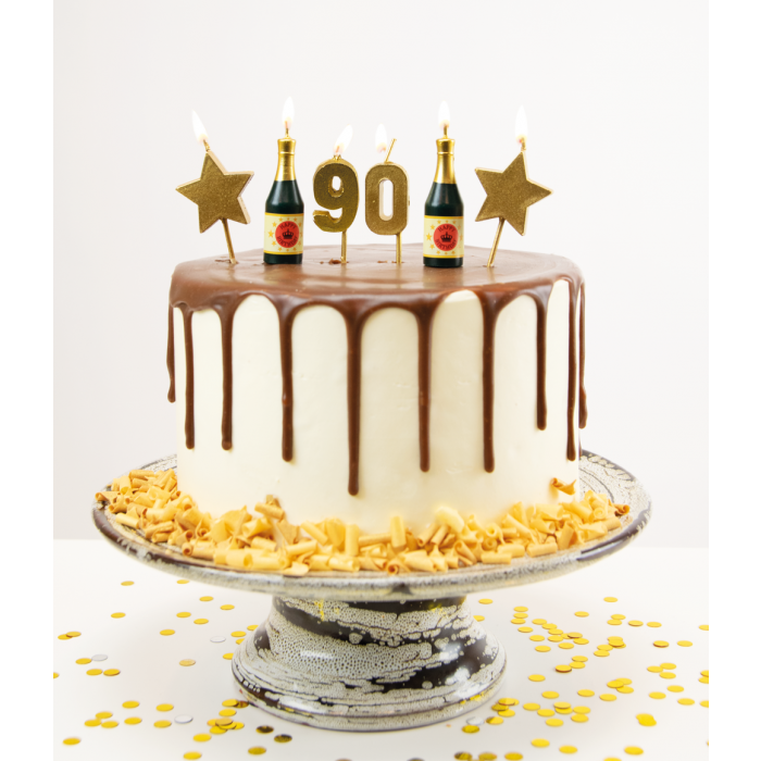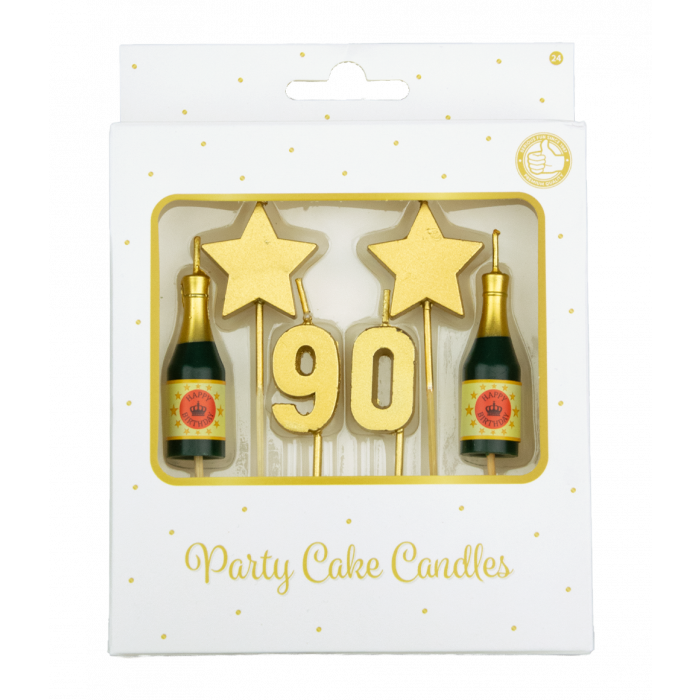 - Taartkaarsjes Set 90 Jaar - Inhoud: 6 kaarsjes- Afmeting: Lengte 17,5cm en hoogte: 2,5cm