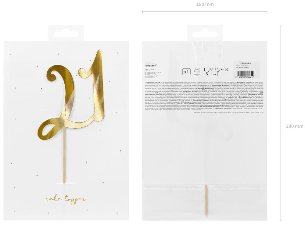 - Taarttopper 21 Goud- Bestaande uit: 1 Taarttopper - Afmetingen: 20,5 cm- Materialen: Hout en karton