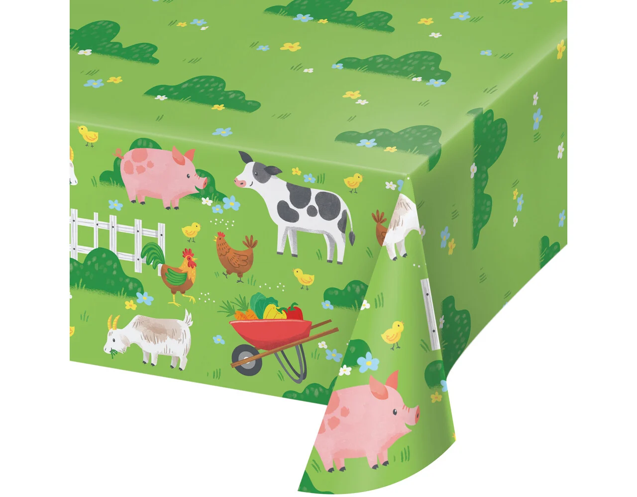 - Tafelkleed Boerderijdieren Farmhouse Fun (137x259cm)Dit tafelkleed met een boerenerf-print is ideaal voor het perfecte boerenfeest. Het wegwerp tafelkleed heeft een afmeting van 137 x 259 cm en past op een rechthoekige tafel.