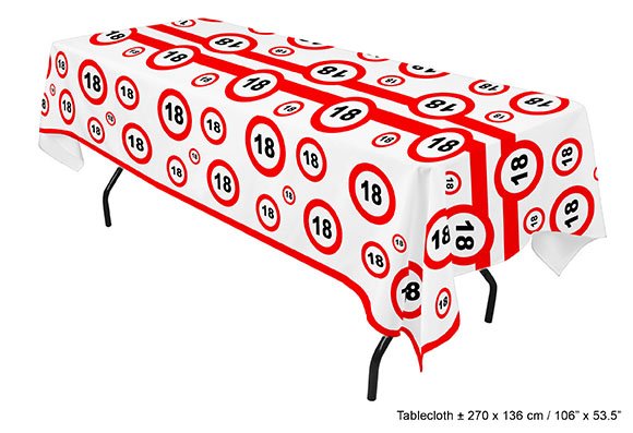 Tafelkleed verkeersbord 18 jaar± 270 cm x 136 cm