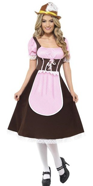 - Bestaande uit: de donker bruine met roze jurk en daaraan vast het roze schort.