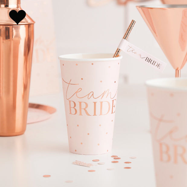 Team Bride Blush Partybekers Rosegoud8 stuks in verpakking