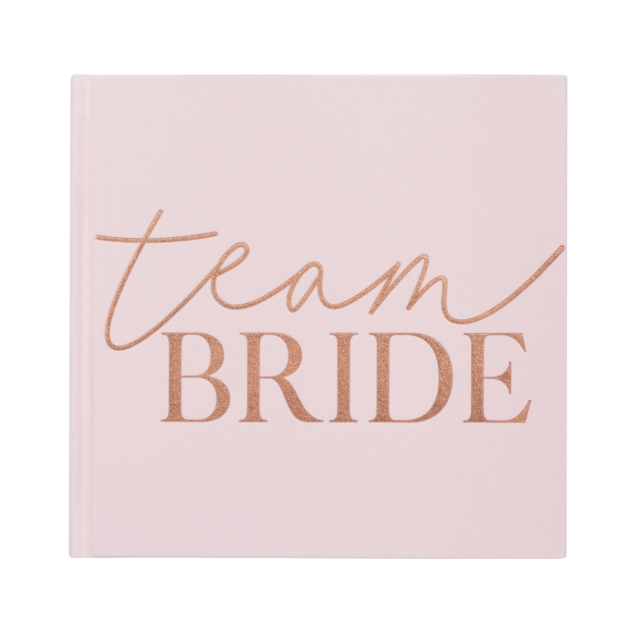 - Team Bride Gastenboek Vrijgezellenfeest- Bestaande uit: 1 boek met 32 blanco pagina's- Afmetingen: 21cm (H) x 21cm (B)- Materiaal: papier en velvetCreëer een blijvende herinnering voor de bruid en vraag gasten om te schrijven in dit blush roze Team Bride gastenboek.