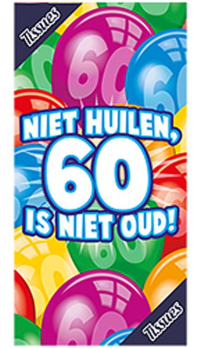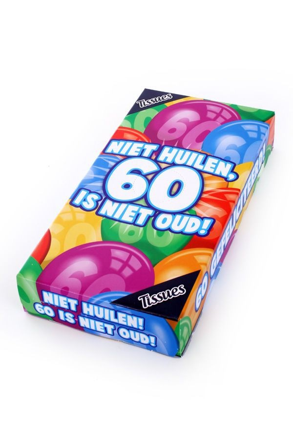 - Tissuebox 60 jaar- Bevat witte tissues- Afmetingen doos: 11 x 22 x 3.5cm- Materiaal doos: Karton