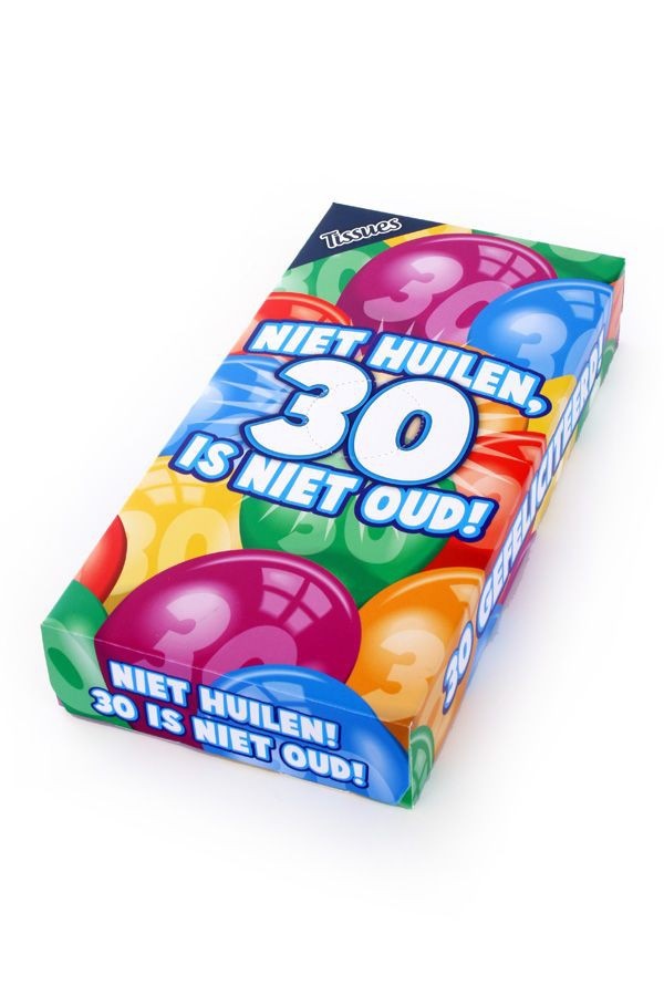 - Tissuebox 'Niet huilen, 30 is niet oud'- Bevat witte tissues- Afmetingen doos: 11 x 22 x 3.5cm- Materiaal doos: Karton