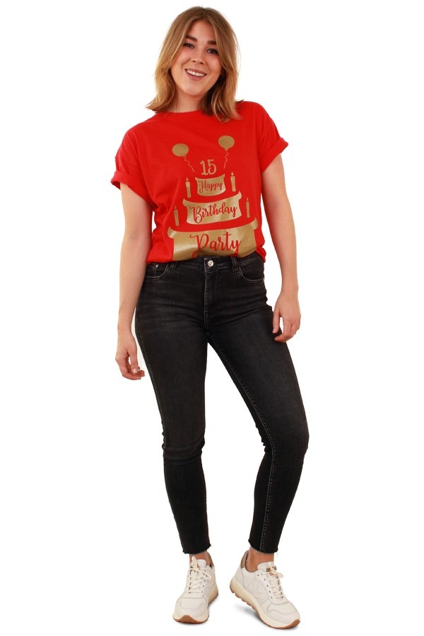 - Toppers T-Shirt Happy Birthday Rood- Unisex!- Beschikbaar in de maten S, M, L en XL