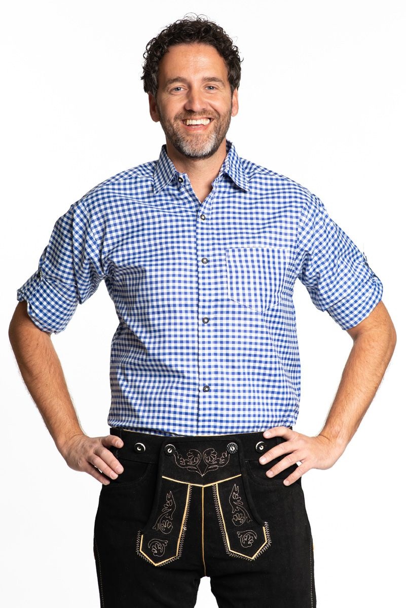 - Trachtenhemd Lange Mouw Blauw Geblokt Tirol