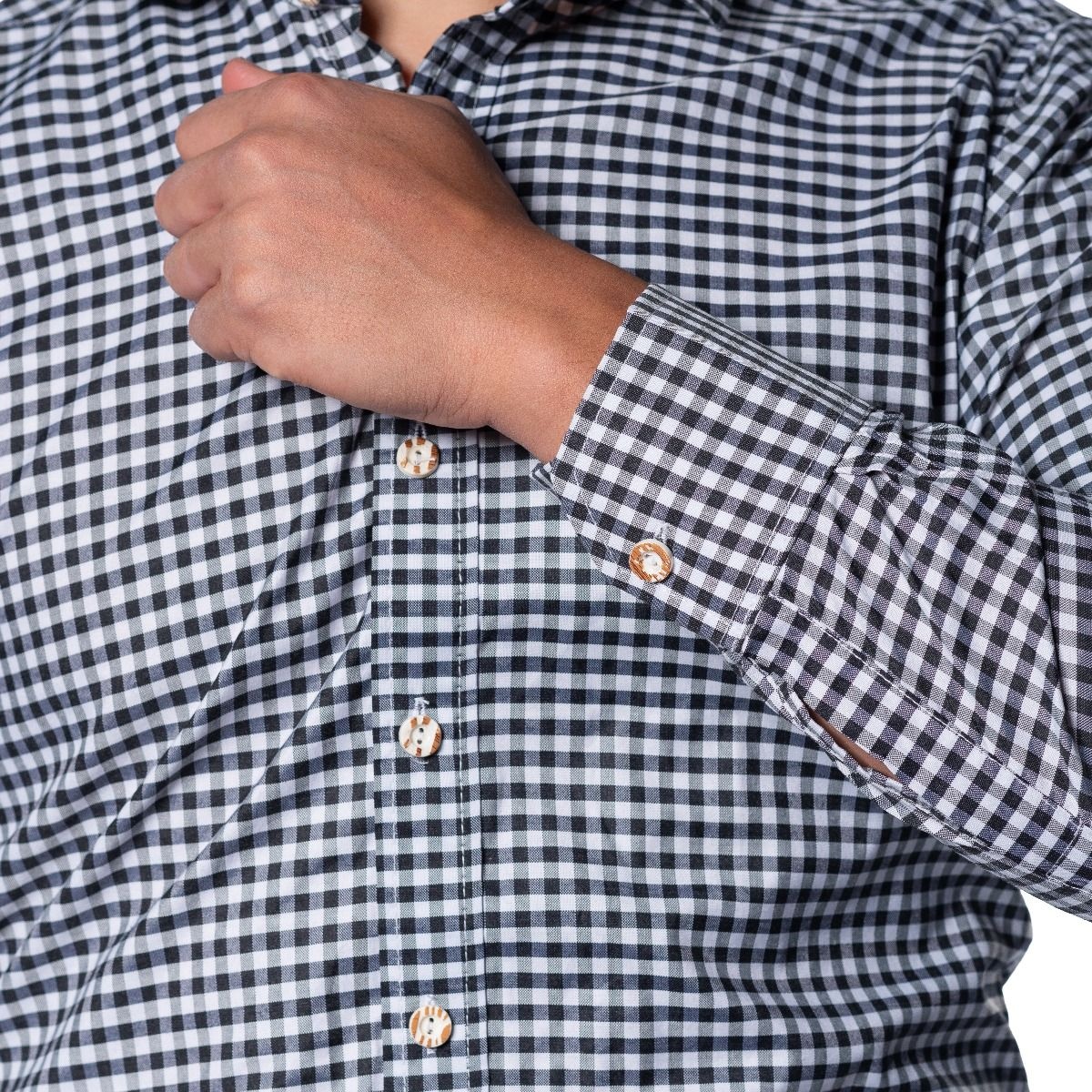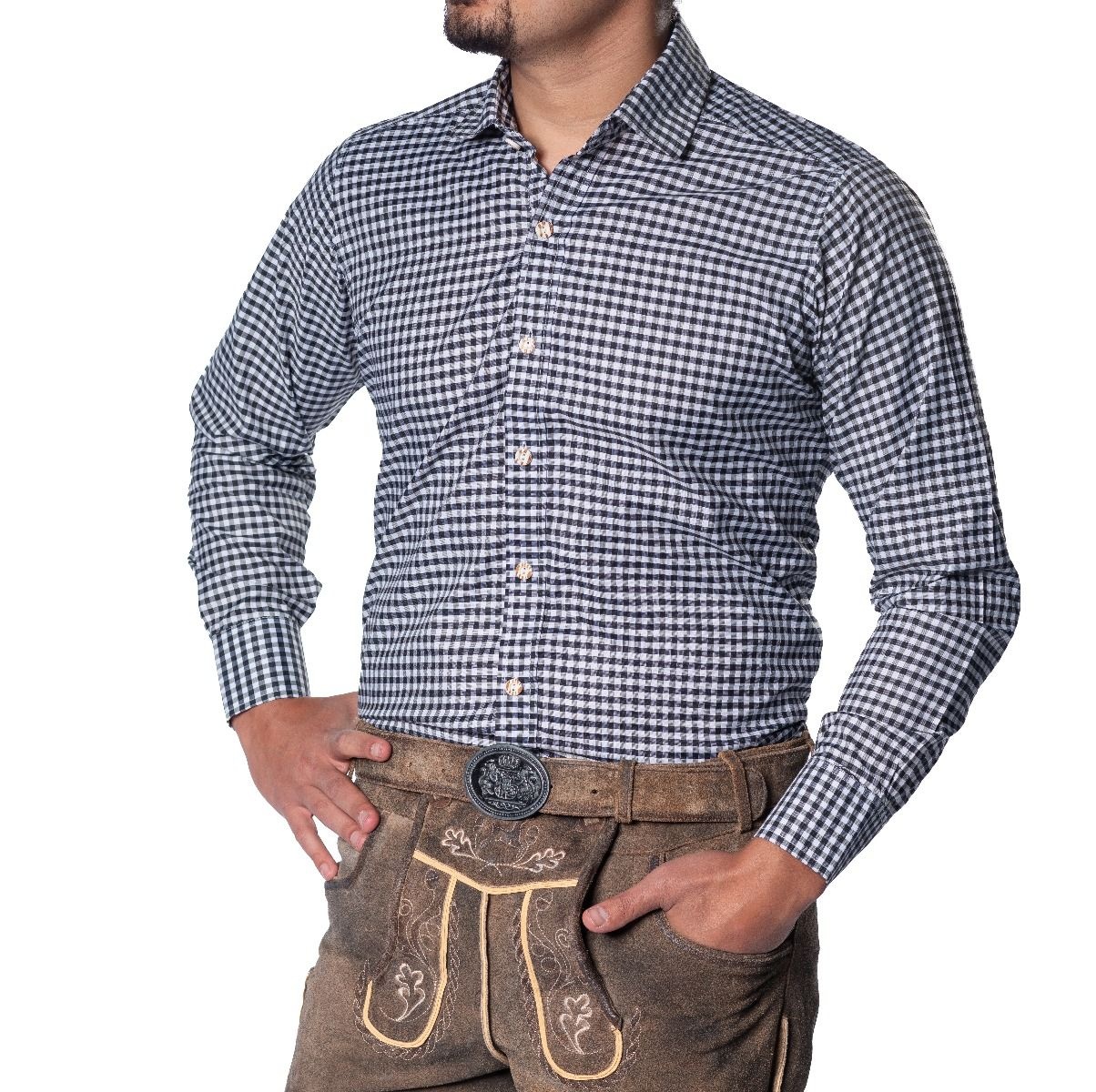 Trachtenhemd Leopold maakt jouw Oktoberfest outfit compleet! Het geblokte trachtenhemd is gemaakt van 70% katoen en 30% viscose en heeft lange mouwen welke je kunt oprollen en vastzetten met een knoopje. Trachtenhemd Leopold heeft een mooie pasvorm en valt tussen normaal en slim-fit in.
