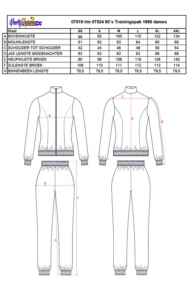 Trainingspak Dames 80`s Zebra RainbowBestaande uit: Jasje, BroekMaten XS t/m XXLMateriaal: 100% PolyesterUitgebreide informatie:Jas:-Ritssluiting-Elastiek in de mouw-Elastiek in de zoomBroek:-Steekzakken-Elastiek in de tailleband-Elastiek onder in de broekspijp