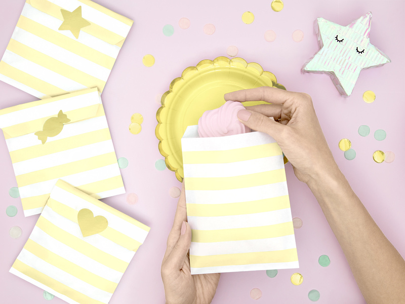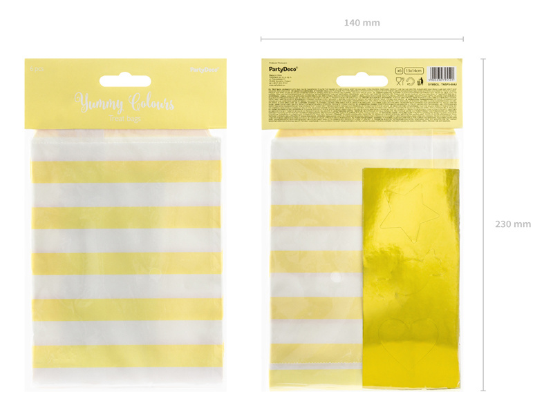 - Traktatiezakjes Yummy Lichtgeel- 6 stuks in verpakking- Afmeting 13x14cm- Inclusief 6 stickers