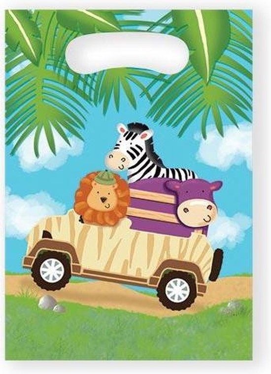 - Uitdeelzakjes Safari- Bestaat uit: 8 losse uitdeelzakjes- Materiaal: Plastic
